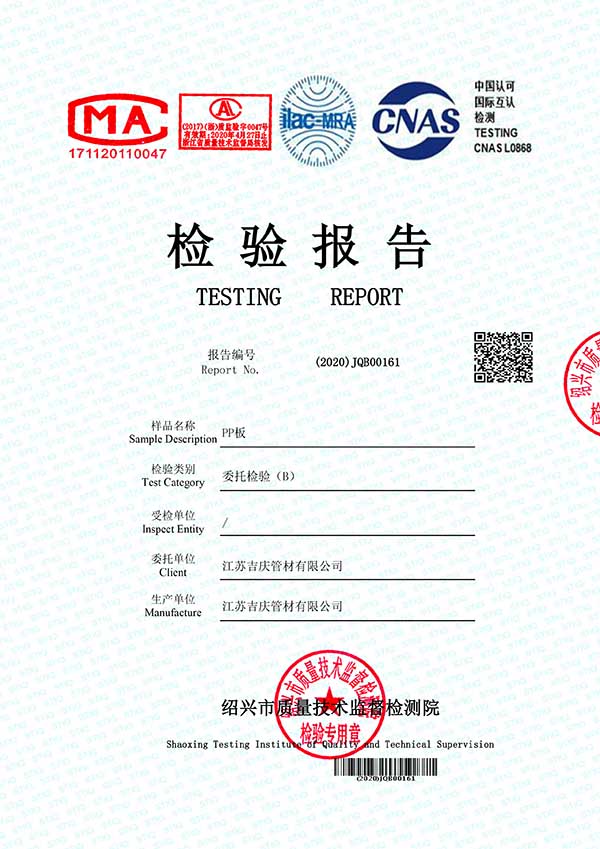江蘇吉慶管材集團有限公司創(chuàng)辦于2010年2月,是pp管,pp管材,pp管件,pp風管,frpp管,frpp管材,pph管,pph管材,pph管件,pph風管,pvdf管,pvdf管材,pp儲罐,pp板材的專業(yè)化生產(chǎn)企業(yè)。公司占地30余畝,擁有各類資產(chǎn)8000余萬元,專業(yè)技術(shù)人員20余人,管材生產(chǎn)線10條,管件生產(chǎn)線11條,具備了10000余噸各類防腐塑料制品的年生產(chǎn)能力。公司通過了ISO9001-2000質(zhì)量體系認證,同時被評為AAA信用單位,2018年公司被評為高新技術(shù)企業(yè),此后陸續(xù)取得安全生產(chǎn)管理證書等榮譽。公司位于水上花園城市----江蘇省揚中市八橋鎮(zhèn)永福路18號,交通便捷,可直接導航至公司園區(qū)內(nèi)。公司全體員工將以高度的敬業(yè)精神,嚴格的質(zhì)量控制理念和科學的管理方法,及時周到的服務,竭力為我國塑料管道在各領域的推廣和應用作出更大的貢獻!